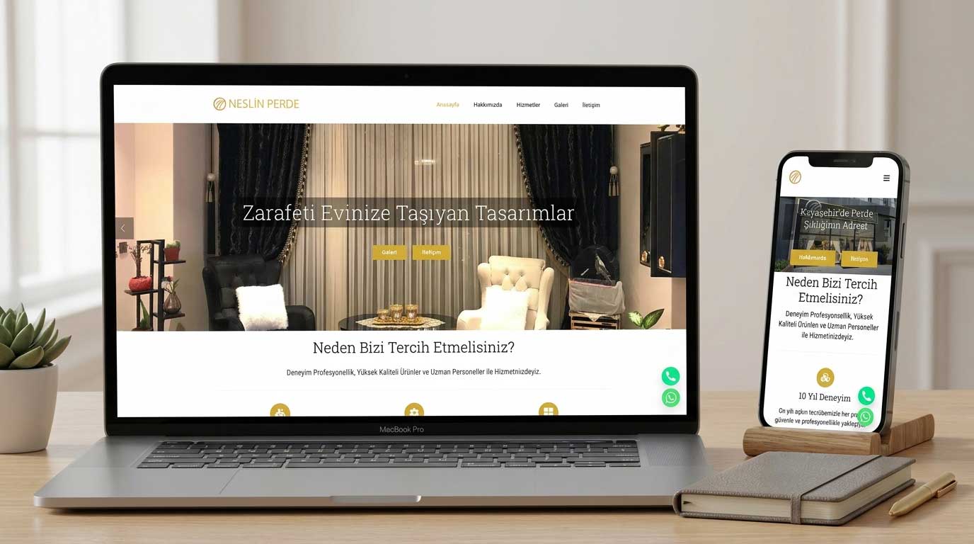 Kayaşehir’de bir perdeciyle çalışmaya başladığımızda aslında çok sıradan bir ihtiyaç gibi görünüyordu: basit, anlaşılır ve müşteriye ulaşan bir web sitesi. Ama konuya biraz yaklaştıkça şunu net şekilde gördük; işletme zaten bölgesinde güçlüydü, iyi hizmet veriyordu ve biliniyordu. Eksik olan şey dijital tarafta doğru şekilde görünür olabilmekti. Biz de tam bu noktada Neslin Perde ile tanıştık.